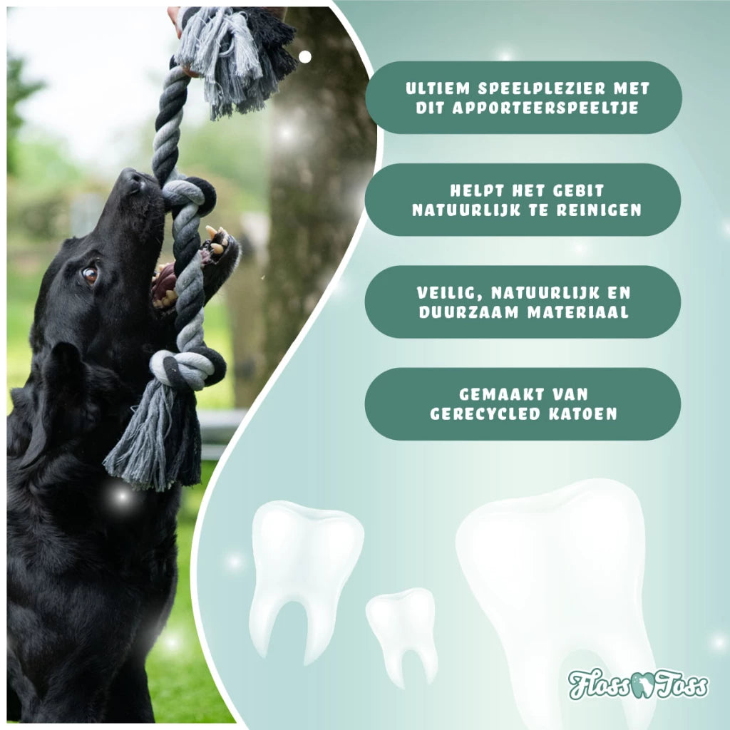 Kortom een het flossen met een flostouw is onmisbaar voor iedere hond!