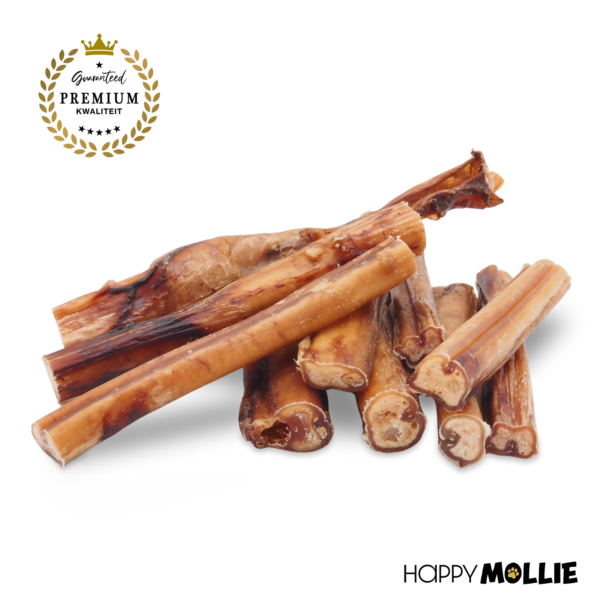 Bullepees is een populaire en een van de meest geliefde traktaties voor elke hond. Het is een harde, smakelijke snack die zorgt voor lang kauwplezier en perfect is om het kauwinstinct van je viervoeter te bevredigen. Hierdoor wordt het hormoon endorfine aangemaakt, wat zorgt voor een rustige en gelukkige hond. Bovendien is bullepees een gezonde en verantwoorde traktatie die bijdraagt aan een gezond en schoon gebit.