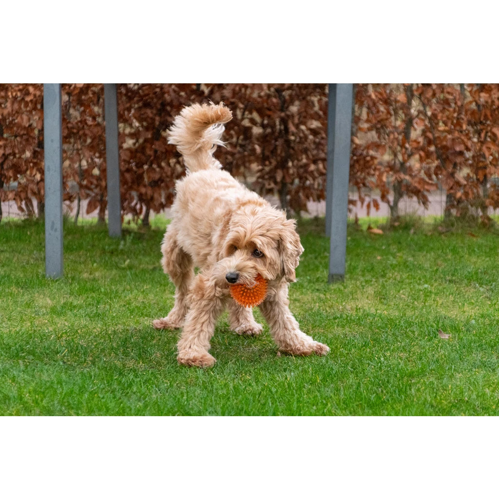 Deze bal vol met stevige maar flexibele 'stekels' zorgt voor urenlang speelplezier en helpt tegelijkertijd het gebit te reinigen! Deze egelbal stuitert perfect, drijft op water en is dankzij de stekels makkelijk vast te pakken. Deze eigenschappen zorgen ervoor dat de bal erg geschikt is voor het apporteren en om mee te spelen in het water. Als de hond de bal in de bek vastpakt, dan masseren de stekels het tandvlees en ze helpen de tanden te reinigen. De pieper in het midden zorgt voor extra stimulans tijdens het spelen.